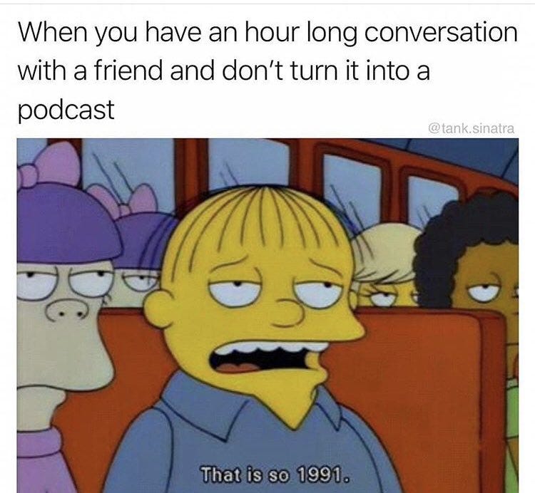 Second, I have zero expectations for this. Everything I’ve done in this “side-hustle” has been a creative endeavor, with little to no expectations that anyone would ever consume it. I am super grateful for my local and enthusiastic followers on Instagram, and my new, albeit much more refined following on Substack. But to now think I have to convince everyone to also follow me on Spotify, or wherever else this is published, seems annoying, so I likely won’t be pushing it too hard. I won’t be overtly telling you to listen to “my new podcast”.